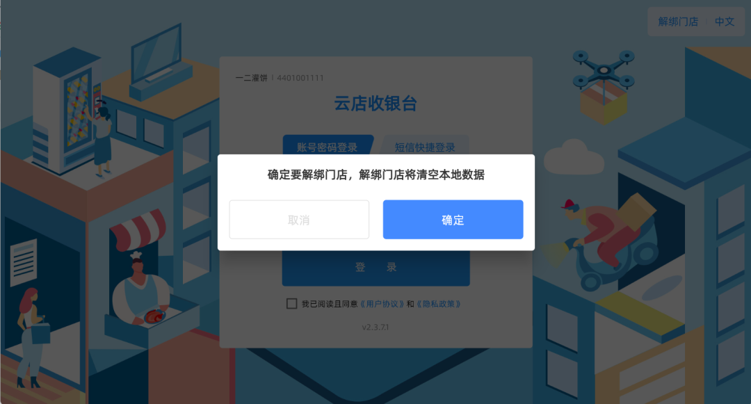 4. 如需登录其他门店,需先解绑当前门店